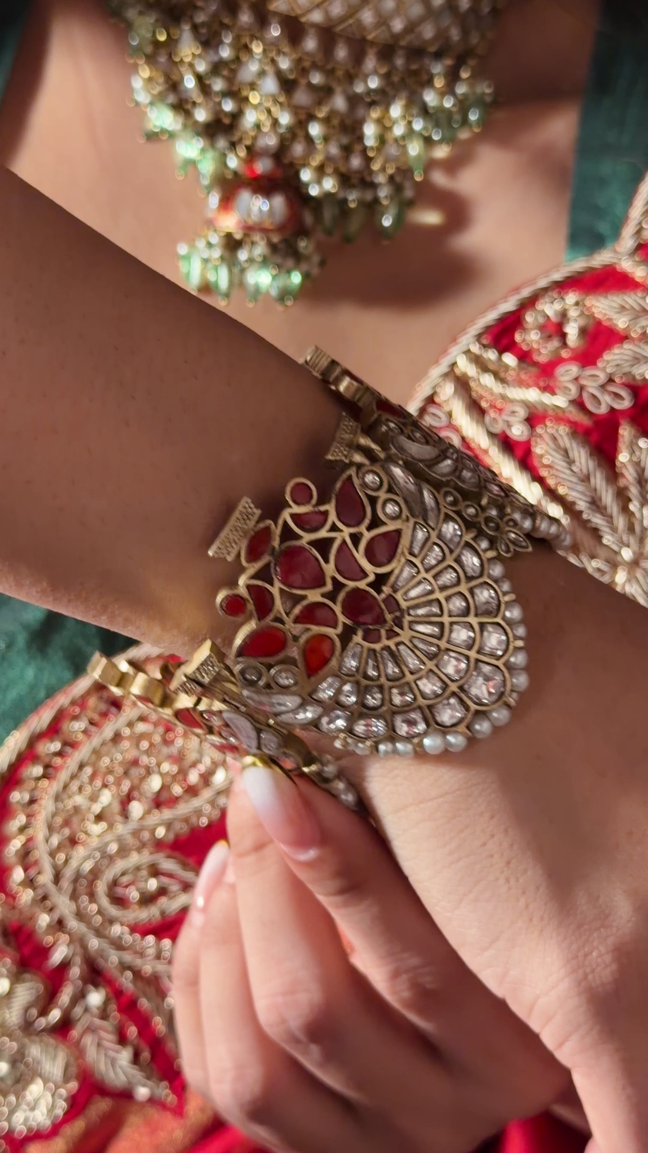 Real kundan and corals has been used here .
